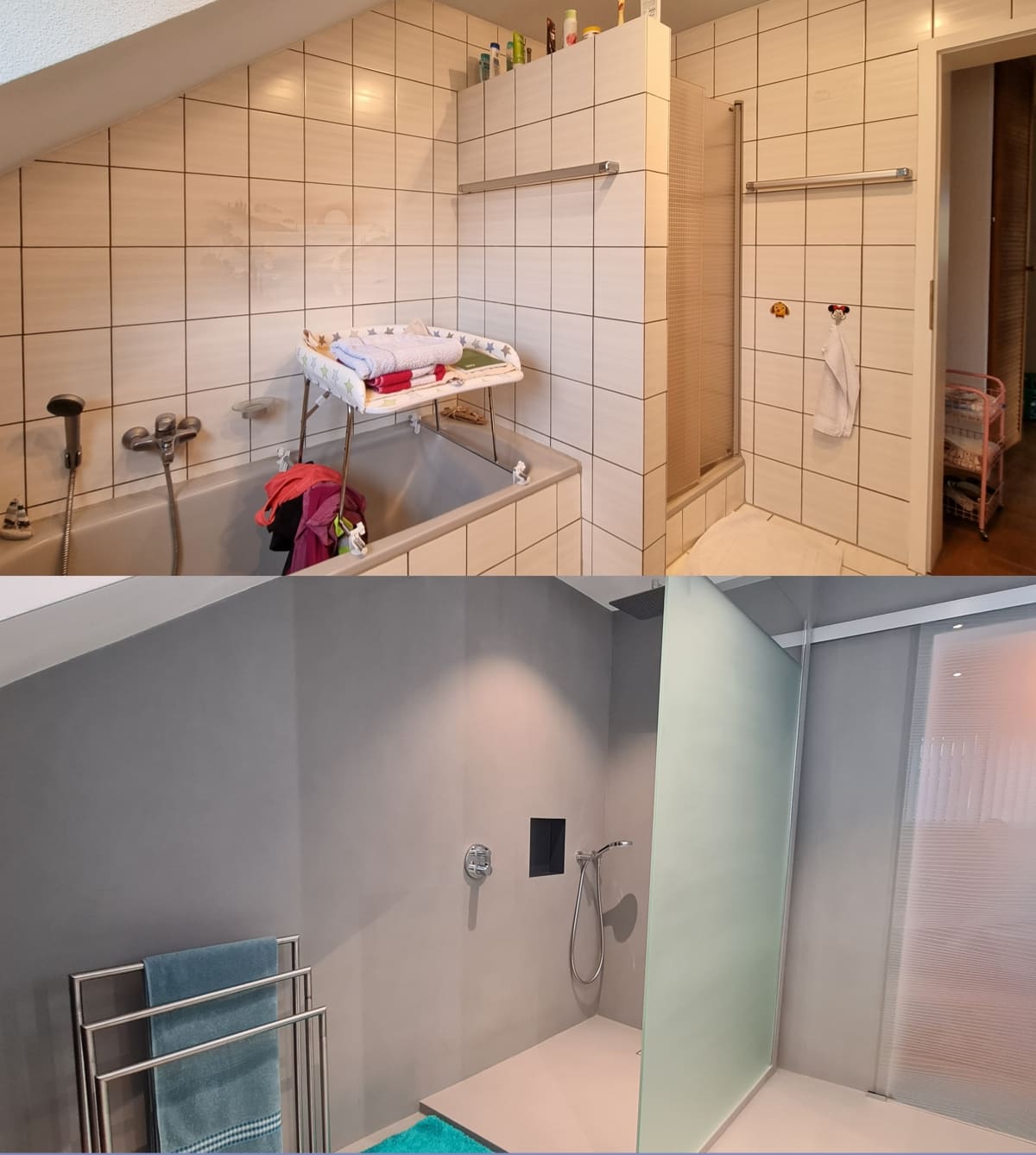 Sie haben ein altes, gefliestes Badezimmer und wollen sich einen aufwendigen Abriss und den damit einhergehenden Staub und Schmutz, ersparen? Sie lieben klare und offene Räume, ein zeitloses Design und wünschen sich mehr Eleganz und Ruhe in Ihrem Badezimmer?